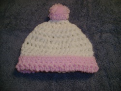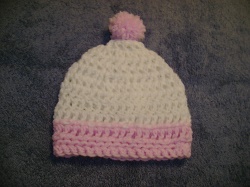 Pink/White crochet baby hat