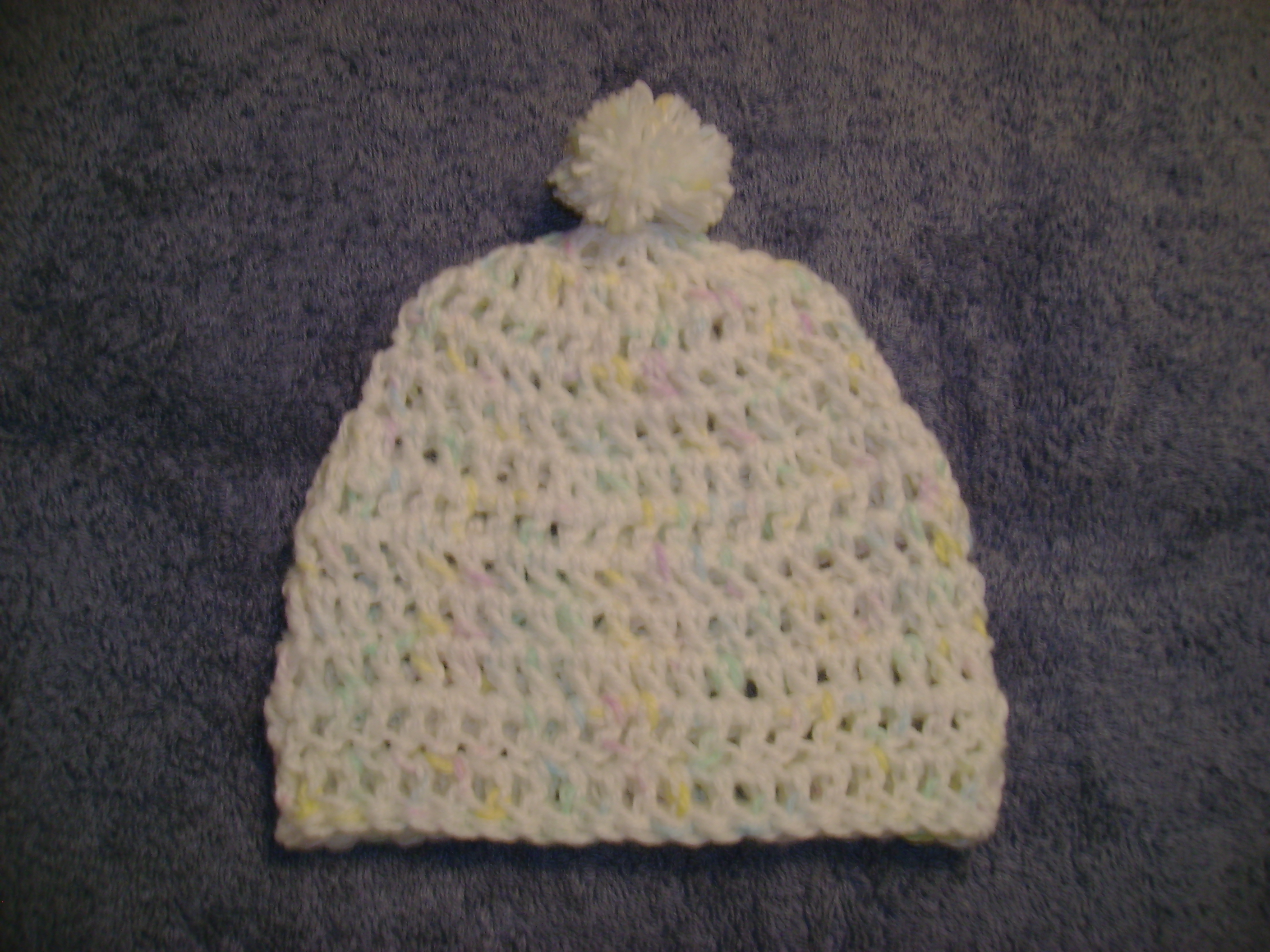 Lavender/White crochet baby hat